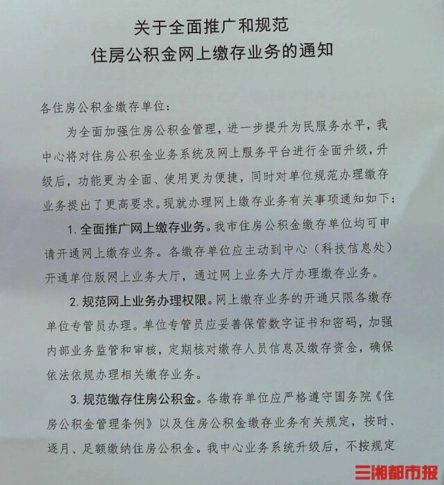 原标题:长沙将全面推广公积金网上缴存业务,定期核对缴存信息及资金