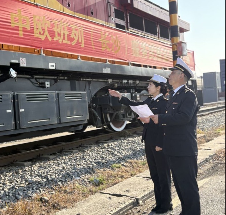 2月12日零时29分,经长沙海关所属星沙海关监管放行,一列满载工程机械、汽车及零部件、小家电等货物的中欧班列,从长沙国际铁路港缓缓驶出。