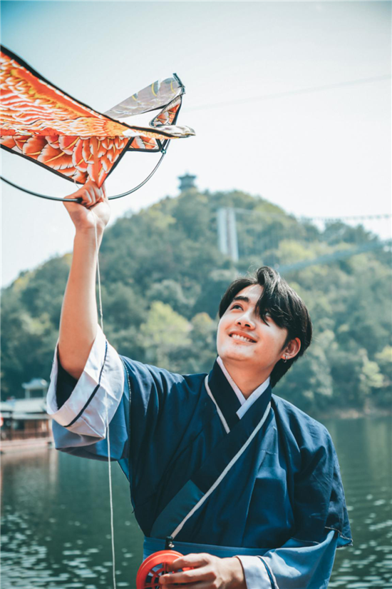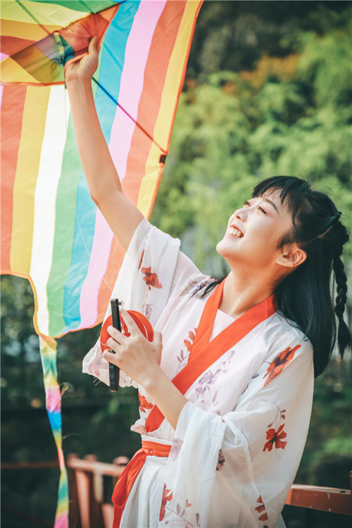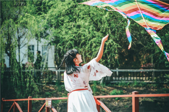 穿汉服放风筝感受春日气息