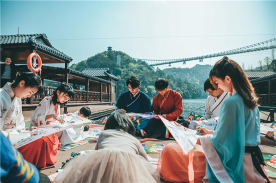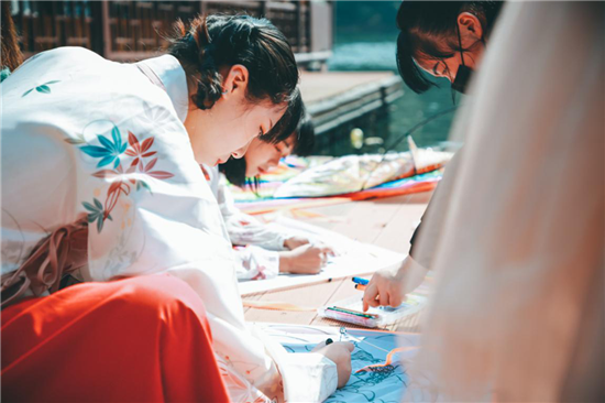 在石燕湖畔、汉服网红打卡点,不少游客身穿美丽汉服,忙趁春风放风筝,并拍照留恋,也给久违的石燕湖平添了几分诗情画意。
