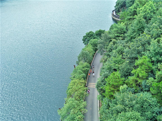 这里群山环抱,碧水如玉,峰峦秀削,芳草鲜美,古干虬枝,绿荫匝地。景区四周环绕着郁郁葱葱的原始次森林,除水面以外森林覆盖率达98%以上,有“都市人绿蓝色的梦幻”“长株潭城市绿心”的美称。
