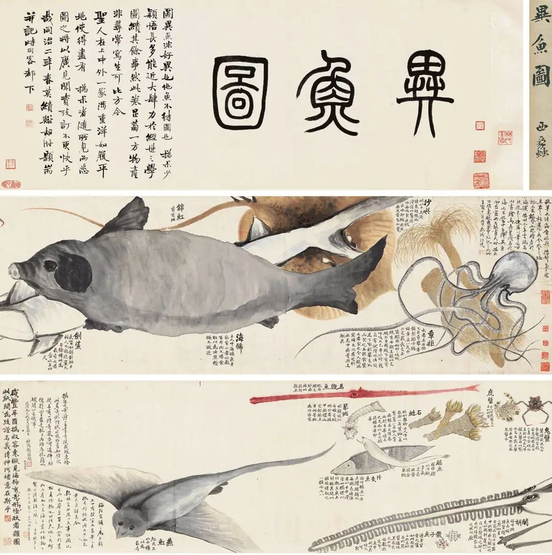胡澍曾为赵之谦珍爱的《异鱼图》题跋。咸丰十一年(1861年),为谋生计赵之谦应友人之邀赴温州,得永嘉县令陈宝善器重。在辗转于温州、瑞安地区,目睹稀奇古怪的花木和奇形怪状的海产,考据的好奇心促使赵之谦画下《异鱼图》手卷。《异鱼图》为晚清画苑奇葩,构图丰富和谐,异鱼15种虽参差向背,大小各异,却能疏密交错,繁而不乱,笔笔相生、物物相需,有一气呵成之势。虽历练战乱,赵之谦一直将这件作品珍藏于身。