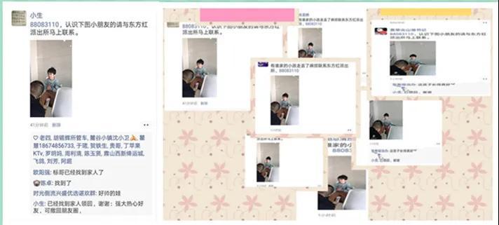 到所后,值班、备勤人员一个人都没闲着,递开水、送衣服、热水洗脚、买鞋换鞋。聊天时,小孩半天都是支支吾吾,想讲讲不出。这时,王性标就在朋友圈发了新年的第一条信息:"88083110,认识下图小朋友的请与东方红派出所马上联系 "。