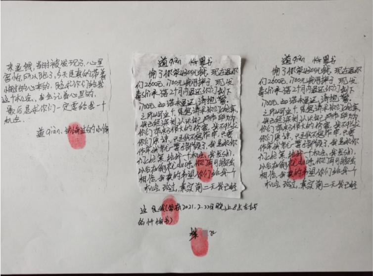 原标题:偷钱后又怕坐牢,小偷退还3000元并写悔过书:“求你们che案,我发shi再偷就duo手”