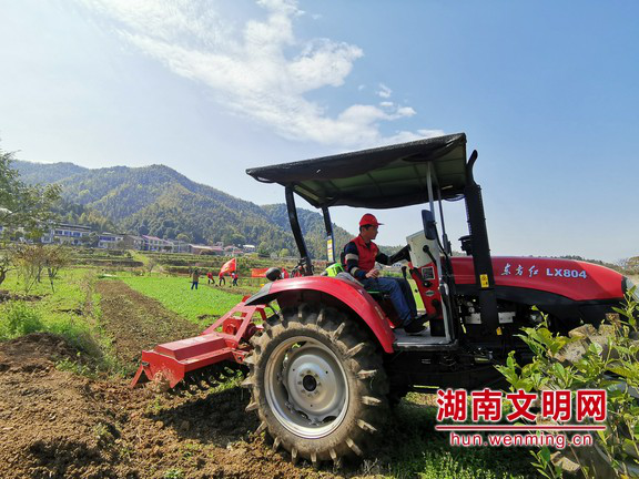 ▲浏阳志愿者助力农户耕种。图片来源:湖南文明网