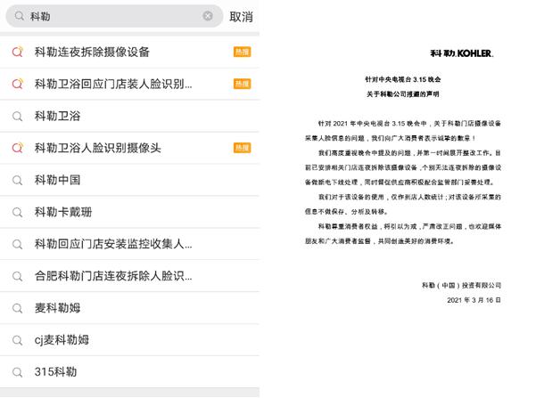 这一爆料引起了民众的巨大反响,相关热搜紧跟着登上微博、知乎等大众平台。3 月 16 日,被曝光的科勒公司发布声明,称已开展整改工作,并安排相关门店连夜拆除相关设备。