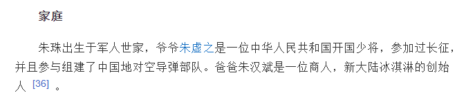 朱珠除了颜值高有实力以外,她的家庭也很不一般,除了爷爷身份厉害,她的爸爸还是知名冰淇淋品牌的创始人,朱珠可以说从小就是被富养长大的名媛大小姐。