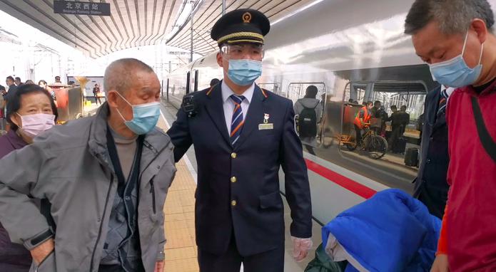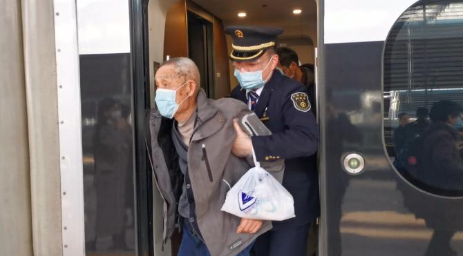 列车温馨提醒广大旅客朋友,家中老人出行时应该全程陪同,并告知列车工作人员帮忙照顾防止意外发生。