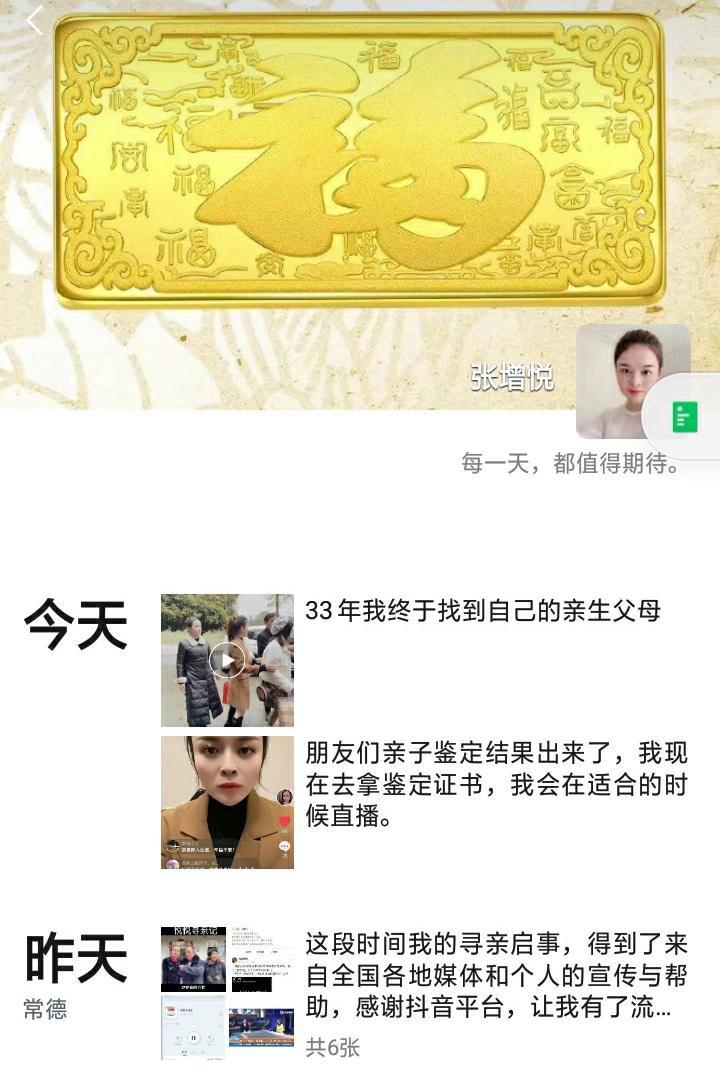 当时,张增悦和该阿姨已经做了亲子鉴定,结果即将公布。4 月 1 日公布的结果显示,该阿姨就是她亲生母亲。据悉她亲生母亲离婚后重组家庭,有两个女儿。