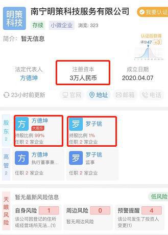 一个是 " 明策 " 一个是 " 央槐 ",为什么 " 滴水汇聚 " 的运营方和员工聘用方不是同一家?记者通过天眼查发现,这两家公司虽然名称不一样,但实际上 " 颇有渊源 ",法人代表同为方德坤和罗子铫,注册资本也同样仅为 3 万元人民币。记者尝试与对方取得联系,但对方直接挂断了电话,此后始终处于忙线状态。