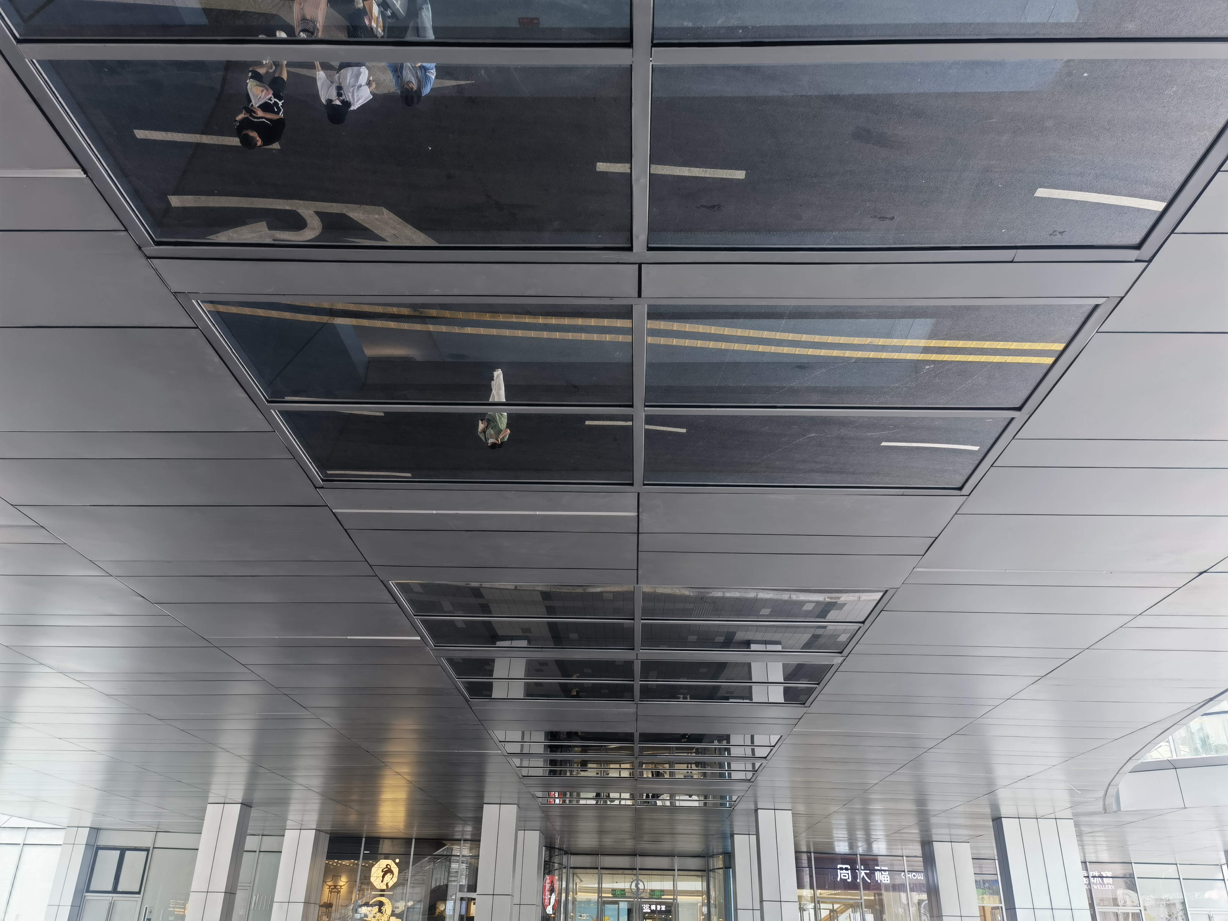 潇湘晨报记者从视频中看到,网友站在一楼,头顶上是二楼的玻璃走道,透过玻璃走道,能隐约看到二楼的行人。