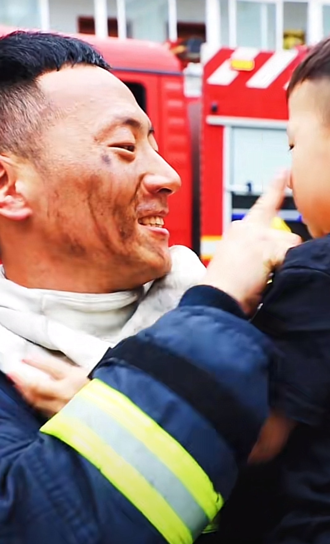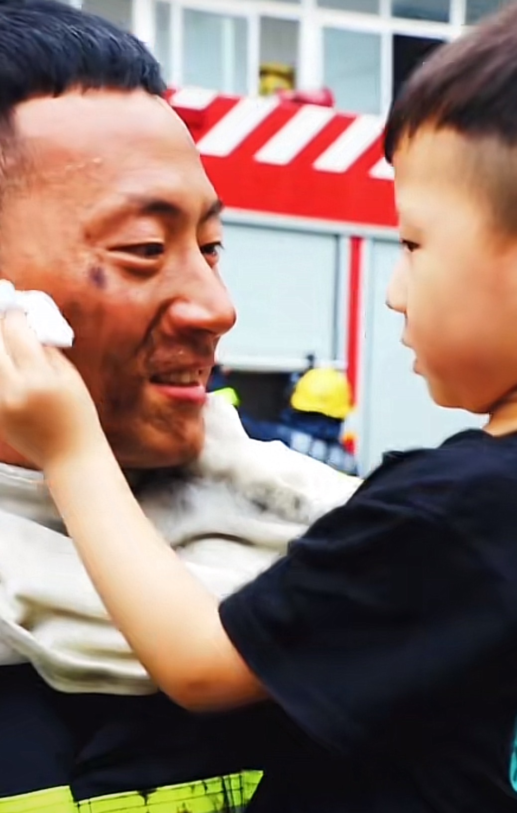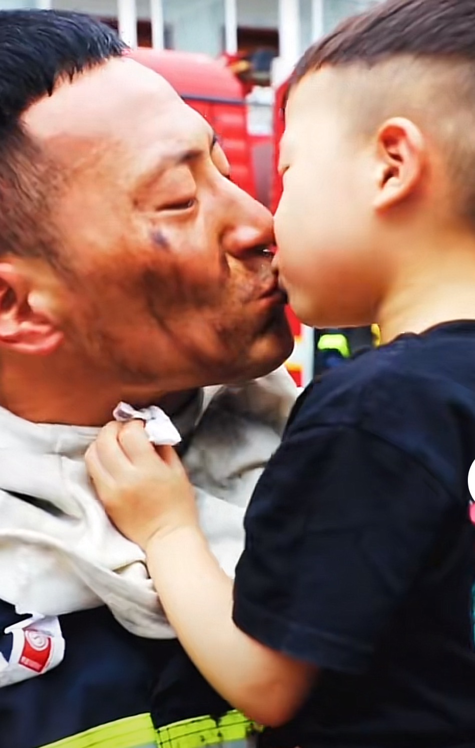 原标题:画面暖心!株洲消防员老爸出警归来一脸黑灰,儿子飞奔上前亲吻