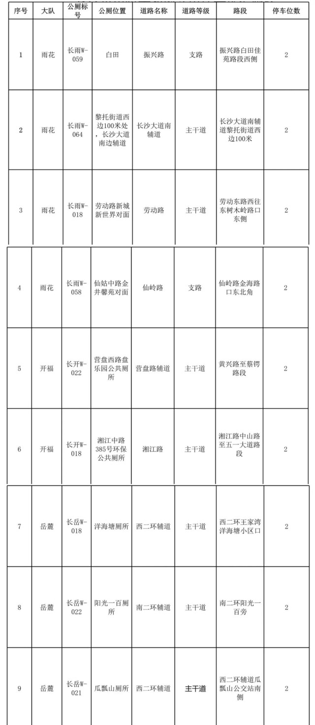记者在采访中了解到,“如厕专用”停车位是长沙交警广泛听取城管环卫部门和出租车驾驶人意见的基础上,考虑道路交通情况设定的。其中,天心区和雨花区各4个,芙蓉区、岳麓区各3个,开福区、高新区各2个,基本满足广大出租车驾驶人如厕临时停车需求。