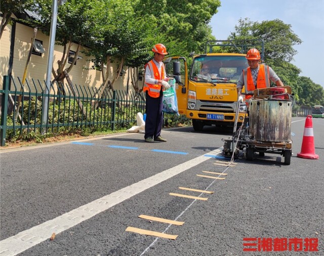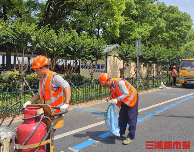 上午9时,记者来到长沙湘江大道橘子洲大桥路段。道路东侧的一处环保公共厕所旁,施工人员正在施画“如厕专用”临停车位。该处设置了两个专用车位,一旁的停车指示标牌上绘制了出租车图案及“如厕限停15分钟”的字样。