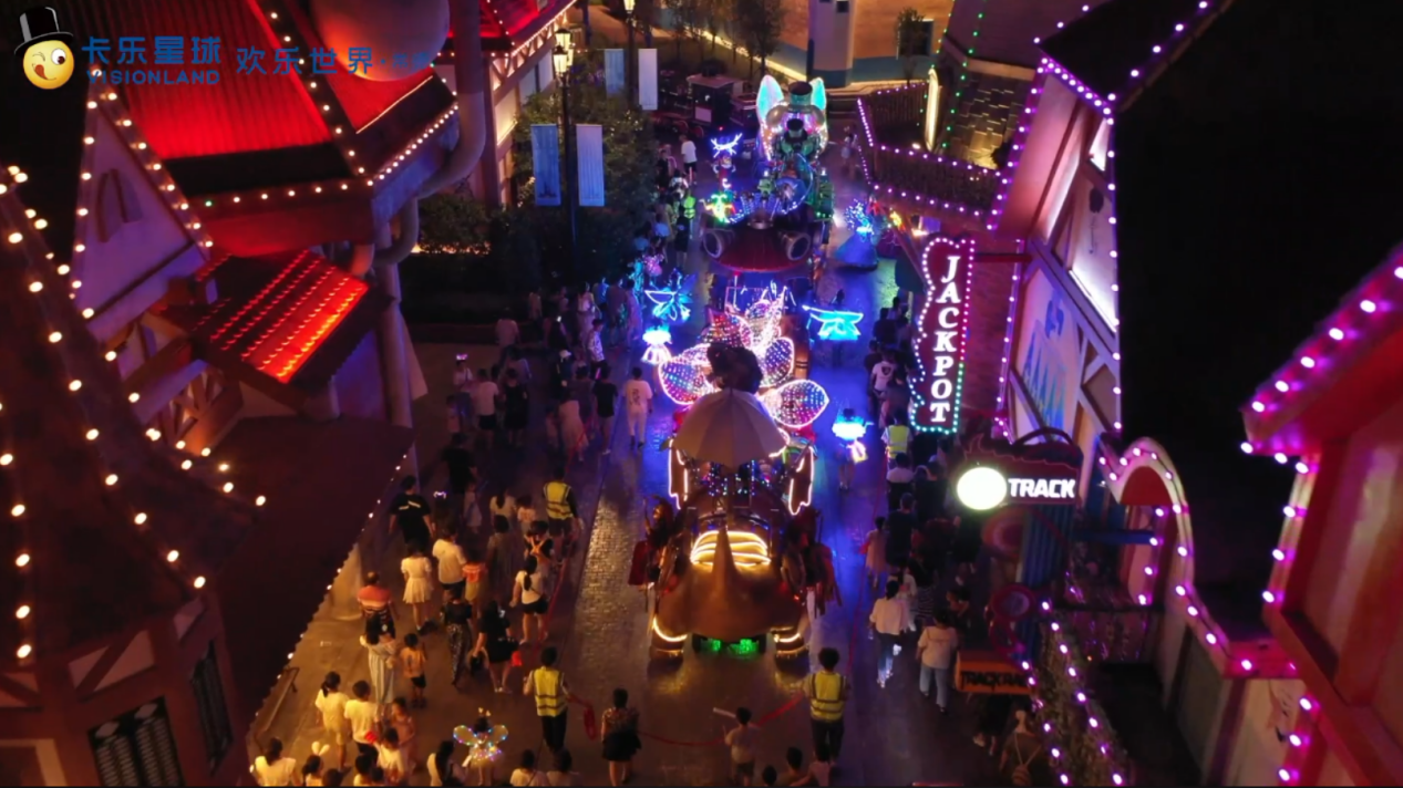 华灯初上,这个快乐星球换上璀璨的晚装,一场盛大的演出登场,动感的DJ、奔放的热舞、惊险的杂技、激情的乐队、有趣的互动让你流连忘返。夜色下的卡乐星球性感而时尚,参加一场充满童趣的泡泡大战、挑战一个惊险刺激的经典项目,品尝各种特色风味的小吃,在这里放松心情,感受亲情、收获爱情、传递友情,世界那么大,就来这个星球度个假。