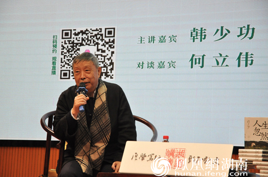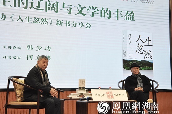 凤凰网湖南讯(通讯员 陈昊 冯慧男)1月9日,前海南省作协主席、著名作家韩少功携新书《人生忽然》做客湖南图书馆湘图讲坛,以人生的辽阔与文学的丰盈为主题,对话湖南省作家协会名誉主席何立伟,共同探讨他们对文学及人生的观察、思考与实践。