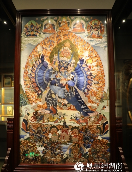湘绣作为古老而传统的民间手绣技艺,是湖湘文化的杰出代表。唐卡是藏族文化中一种独具特色的绘画艺术形式。所谓“十年磨一剑”,《雪域慈悲》湘绣唐卡经过10年的不断打磨,必将成为两种不同文化碰撞产生的艺术精品,成为首创之作、传世之作。中华民族能长久屹立于世界民族之林,因为拥有着五千年的悠久历史,在这漫漫历史长河中所孕育出的丰富多彩、博大精深的民族文化。其中,最具代表性、民族性及传承性的文化就是非物质文化遗产。而这两种非遗的结合,对于中华民族非物质文化遗产的传承与创新,有着史无前例的推进作用。