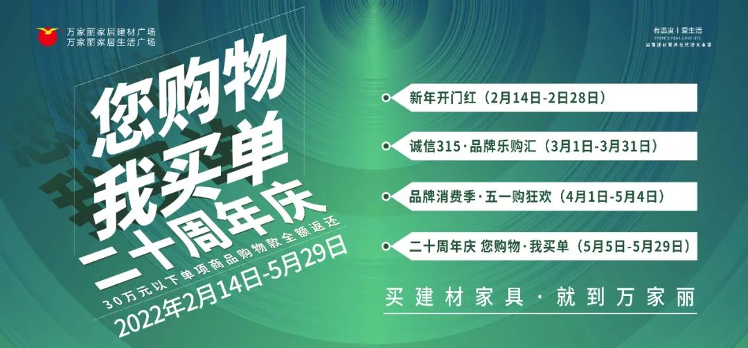 感激新客户的信任、感恩老客户的支持,为答谢新老客户,万家丽家居建材广场&家居生活广场,携手全场入驻品牌,用千万豪礼为您打造长达100天的家具建材“盛惠”,用百万免单,坚持二十年如一日的用真现金、真力度回馈消费者!