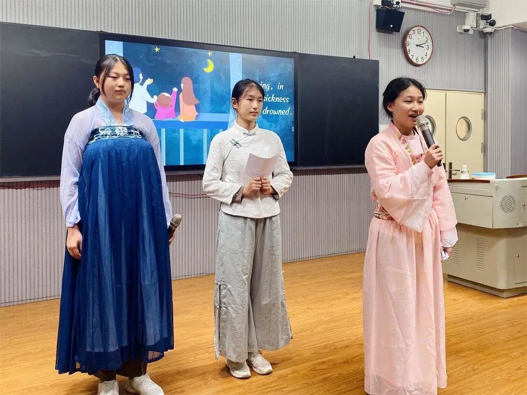 演讲比赛中,36组学生各显神通,用地道的英语表达,生动形象地演绎了广为流传的中国故事,如《孟母三迁》《孔融让梨》《夸父追日》《范仲淹与岳阳楼记》《半条被子》《抗疫故事》等。从准备服装、自制道具、设计情境,到撰写英语文稿、反复熟练台词,学生们小组合作,发挥创造性思维,运用新媒体音视频,图文并茂地展现了中国故事的情节和其传递的核心价值。表演皮影戏、展现中国兵器、演奏中国乐器、英语诗朗诵等丰富新颖的表演形式,赢得现场评委、观众的阵阵掌声。