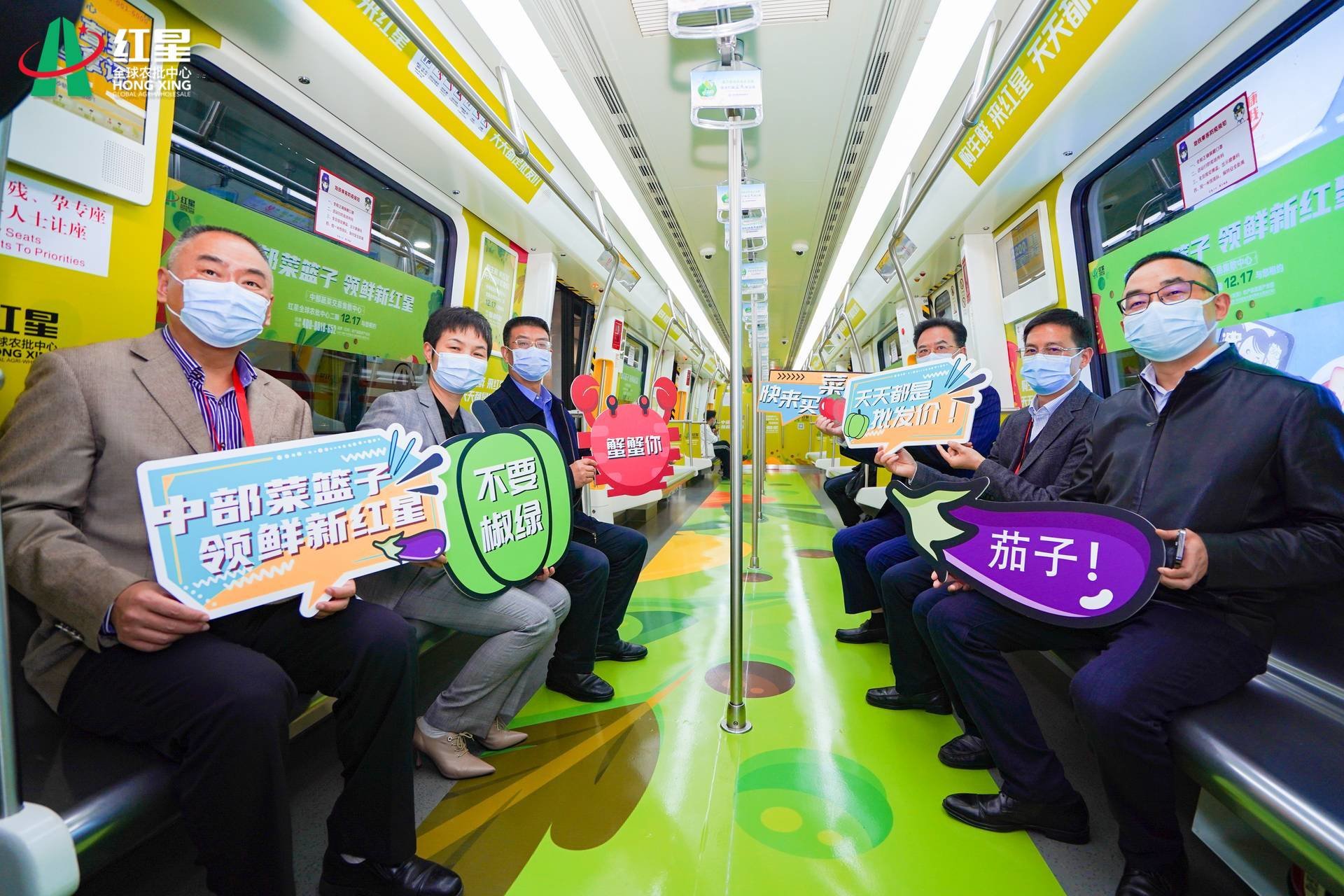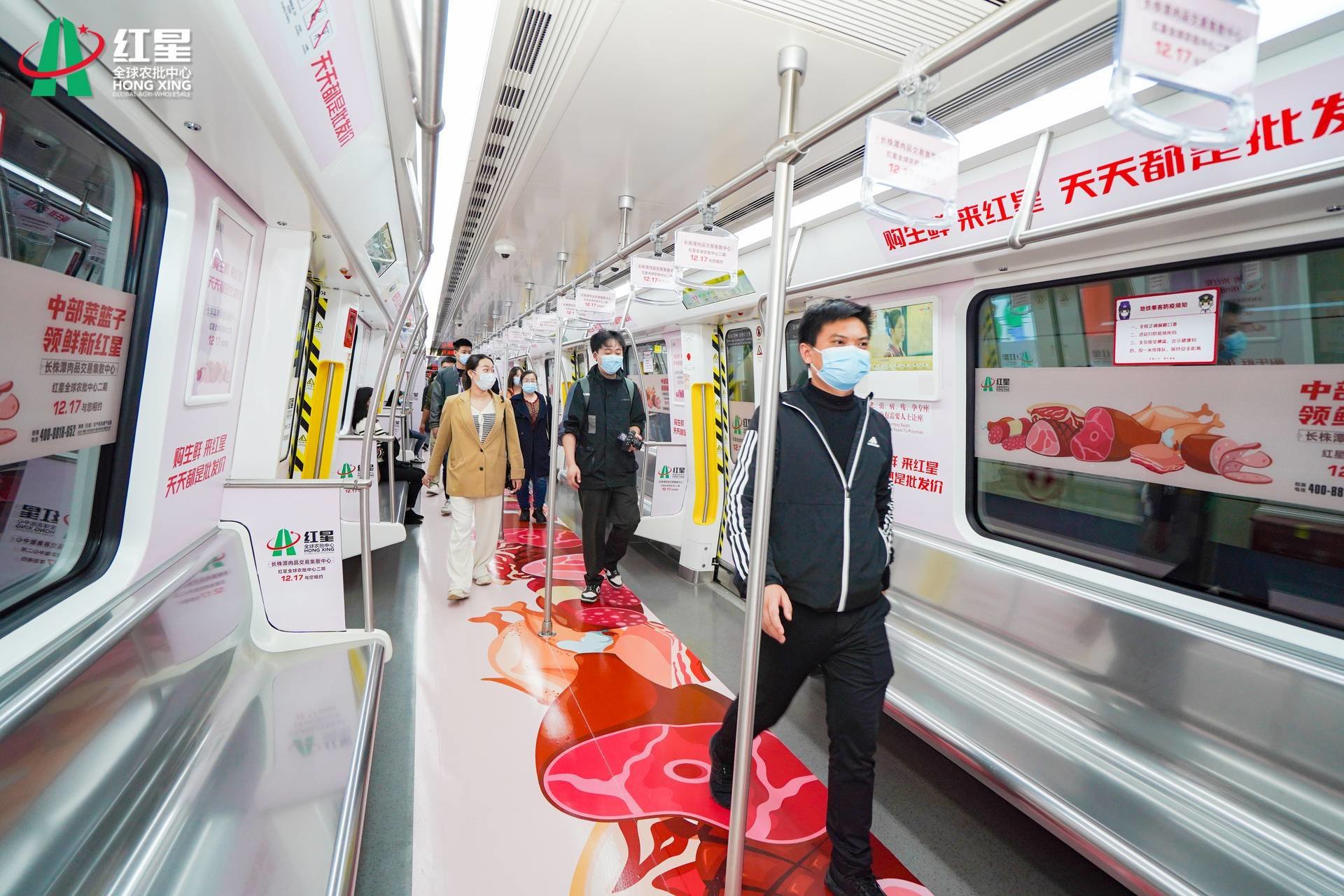 11月26日,一列装饰着蔬菜、肉食、海鲜等农产品元素的“红星号”主题专列,从长沙地铁5号线万家丽广场站驶出。