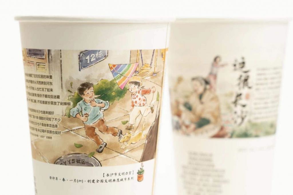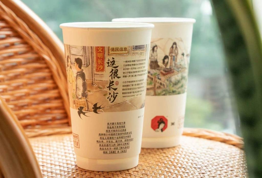 据悉,为助力长沙争创全国文明典范城市,扩大外宣影响力,长沙市委宣传部、市文明办与茶颜悦色共同合作设计了 2 款纸杯,将文明创建宣传口号、主题内容与茶颜风格结合印在纸杯上,并于今年 1 月已上线茶颜悦色湖南区域(长沙、常德、株洲、岳阳、衡阳、湘潭)300 多家门店。