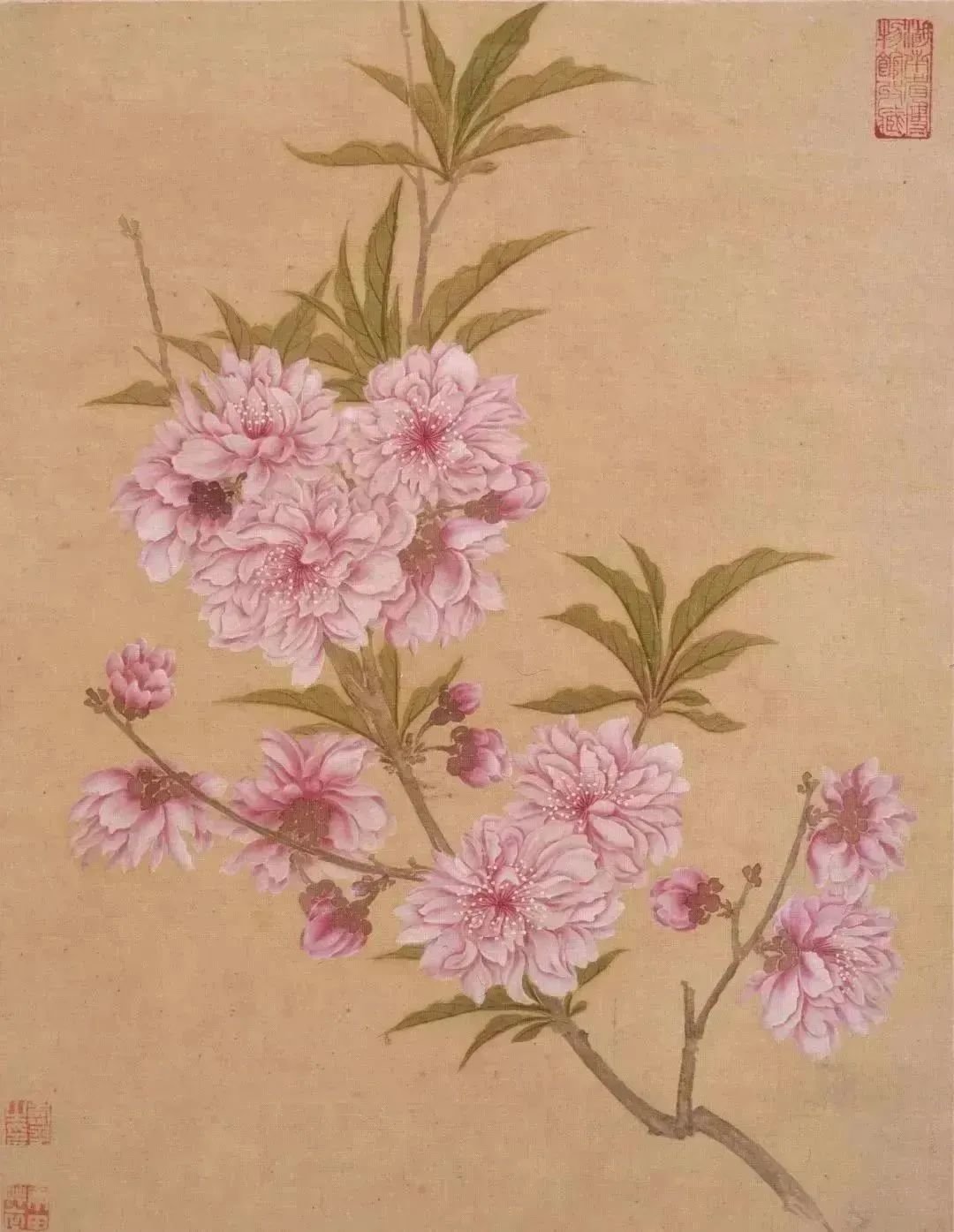 “桃之夭夭,灼灼其华”,采撷一枝桃花,用娇艳的意趣装点春天,在醉人的花香中,感受隽永的春意。画中一桃枝斜入画面,花朵千娇百媚,风姿各异,有活泼盛开翘首仰望的,有“犹抱琵琶半遮面”的。造型新颖,设色典雅,笔墨清灵秀洁,予人盎然意趣。