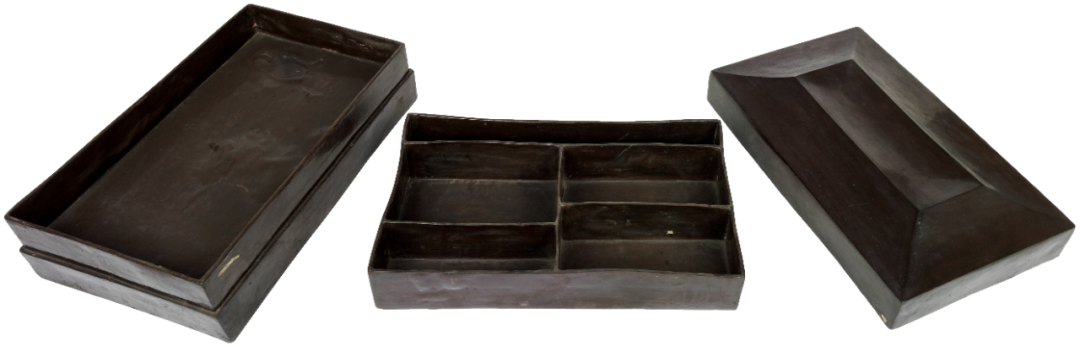 答案藏在这件其貌不扬的黑色漆书奁里。它上有盖,下分双层。下层内设有5个长短大小不等的长方格,盛放帛书医简等。从这个小小的漆奁中,我们得以窥见古人的爱书之心。