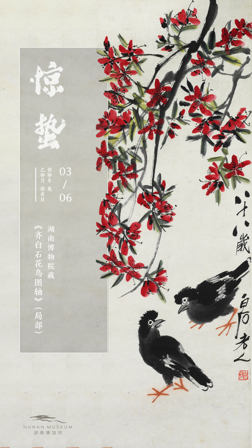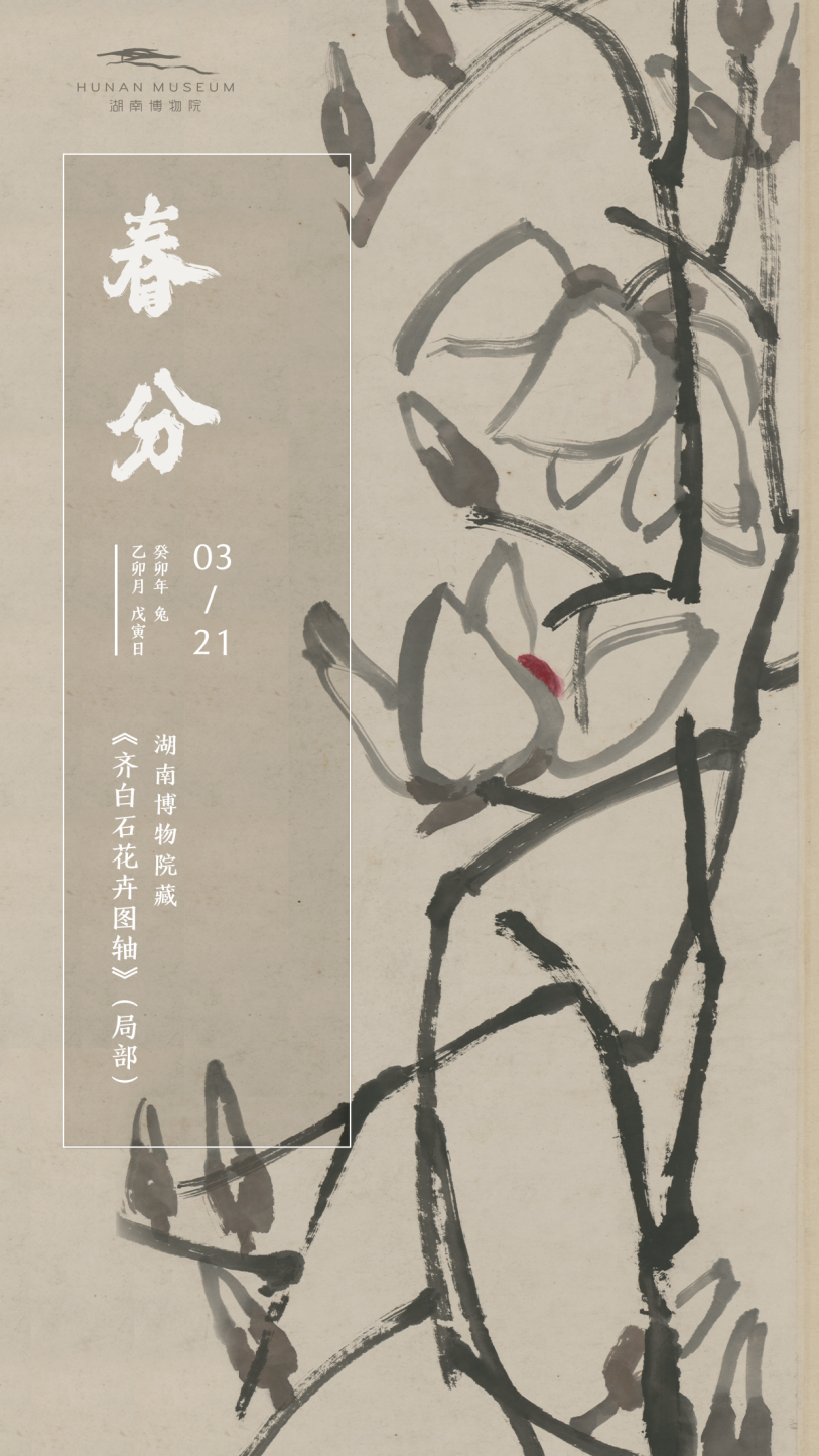 湖南博物院特别推出“节气里的湘博风物志”,每个节气精选齐白石大师的画作,推出节气海报。如果您感兴趣,不妨关注“湖南博物院”官方微博,在每个节气日当天,领取节气海报哦!