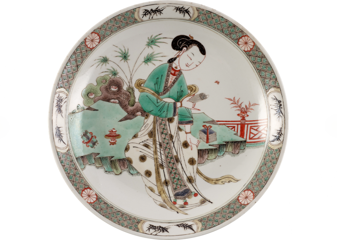 清 持卷仕女图五彩瓷盘