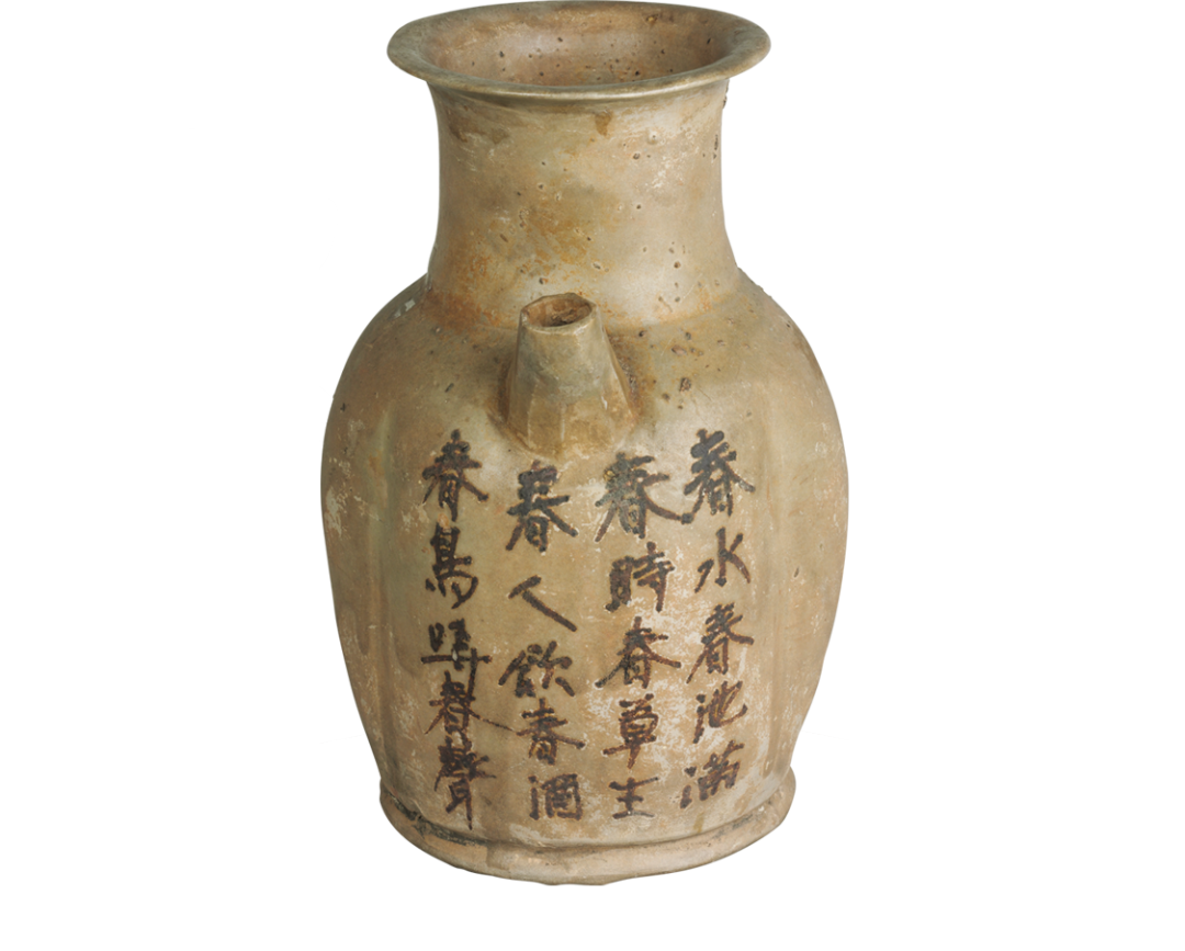 说起湘博文物里的春天,一千年前的这件唐长沙窑青釉褐彩“春水春池满”诗文执壶上的诗歌,可以说是“最春天”了。