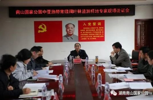 3月29日上午,南山国家公园中亚热带低海拔常绿阔叶林监测样地建设专家现场论证会在南山国家公园黄桑片区召开。会议邀请了中科院植物研究所副研究员米湘成、中科院武汉植物园副研究员徐耀粘、中国林科院副研究员刘芳以及中南林业科技大学张翔博士等专家赴现场进行指导论证。 湖南 省林业局党组成员、南山国家公园管理局党委书记、局长王明旭, 南山国家公园管理 局综合处、生态处主要负责人,绥宁、东安、新宁、城步片区各相关单位负责人及科研监测负责人参加会议 。