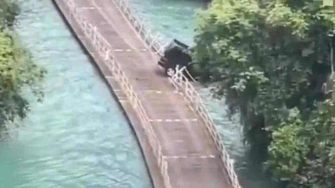 而网传坠车视频显示,黑色商务车经过浮桥时带起层层波浪,而且车辆在行驶中出现轮胎打滑现象,后冲破护栏坠入水中。