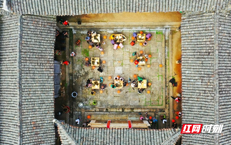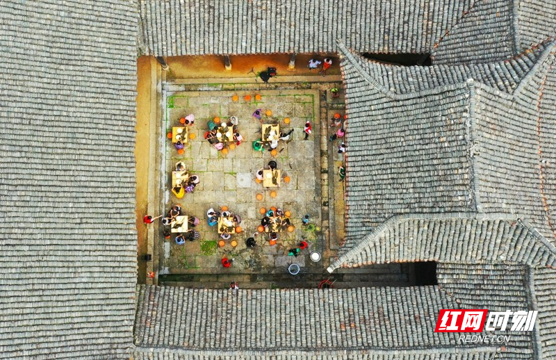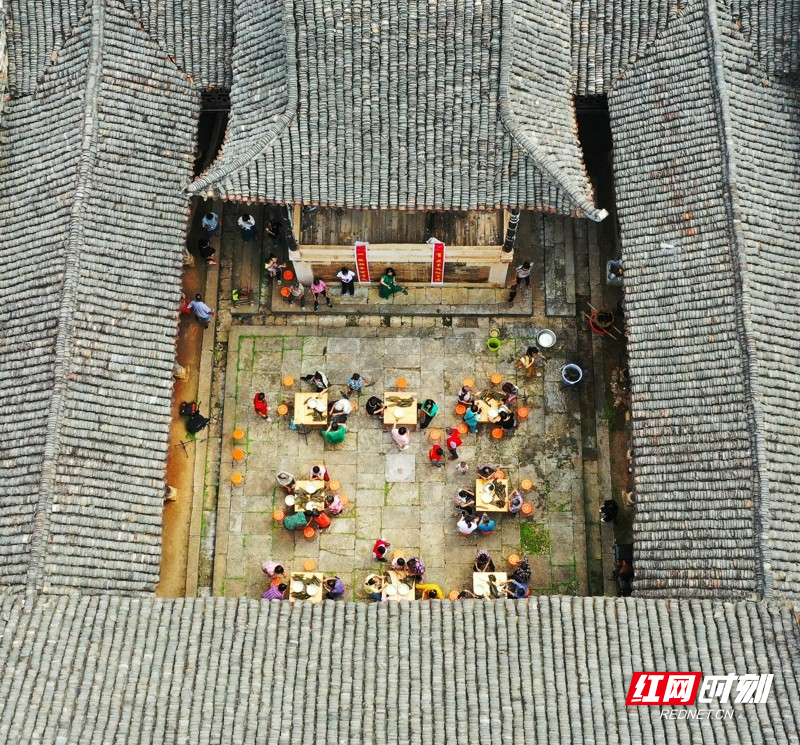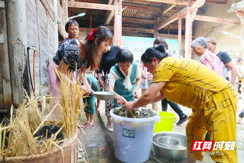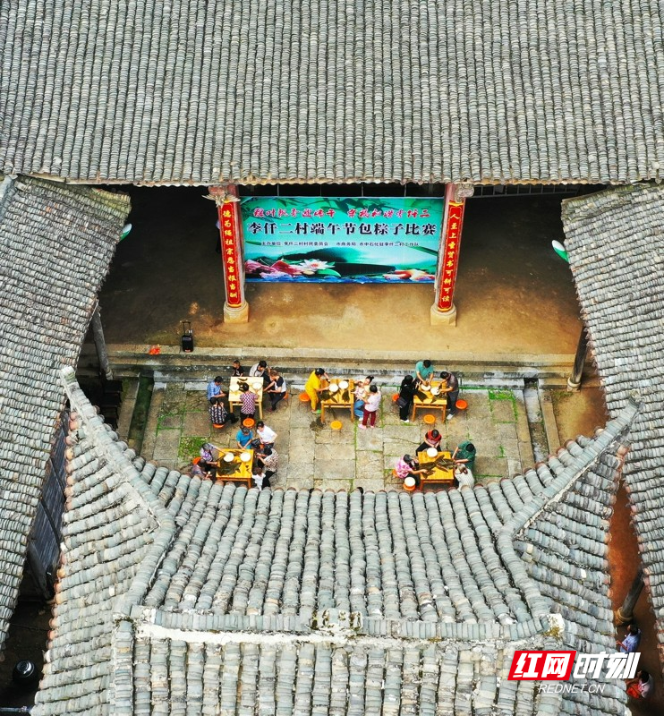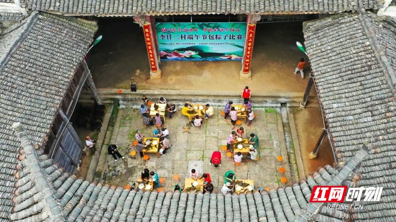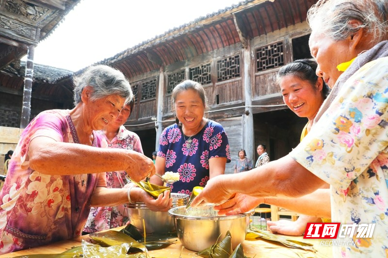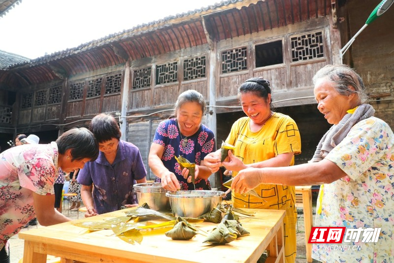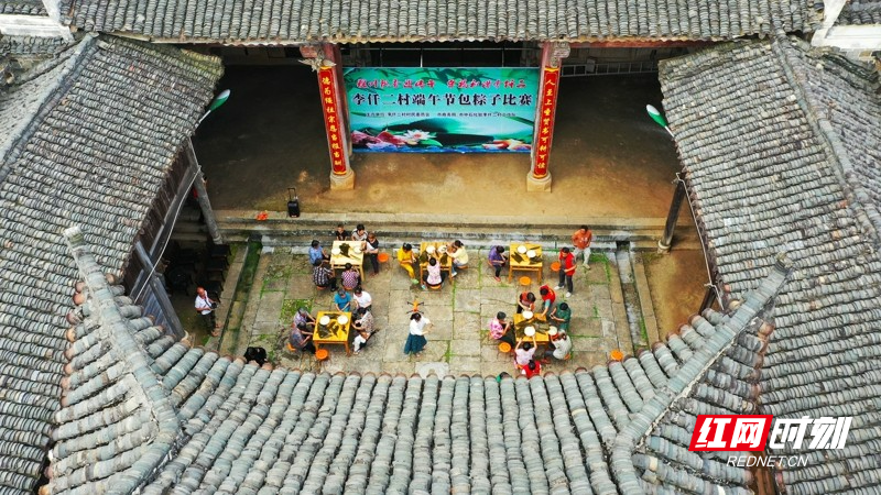 红网时刻新闻6月21日讯(通讯员 刘贵雄 唐钰)6月21日,湖南省永州市新田县金盆镇李仟二村,村民在古村祠堂里包粽子,喜迎端午佳节。