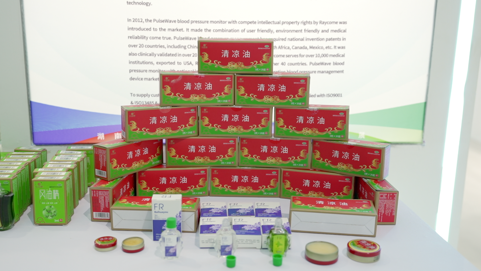 湖南众益泰制药有限公司的展位可谓是展区内最“香”的,吸引大量非洲客商试用摆在展台上的风油精、清凉油、跌打损伤类等外用搽剂产品。