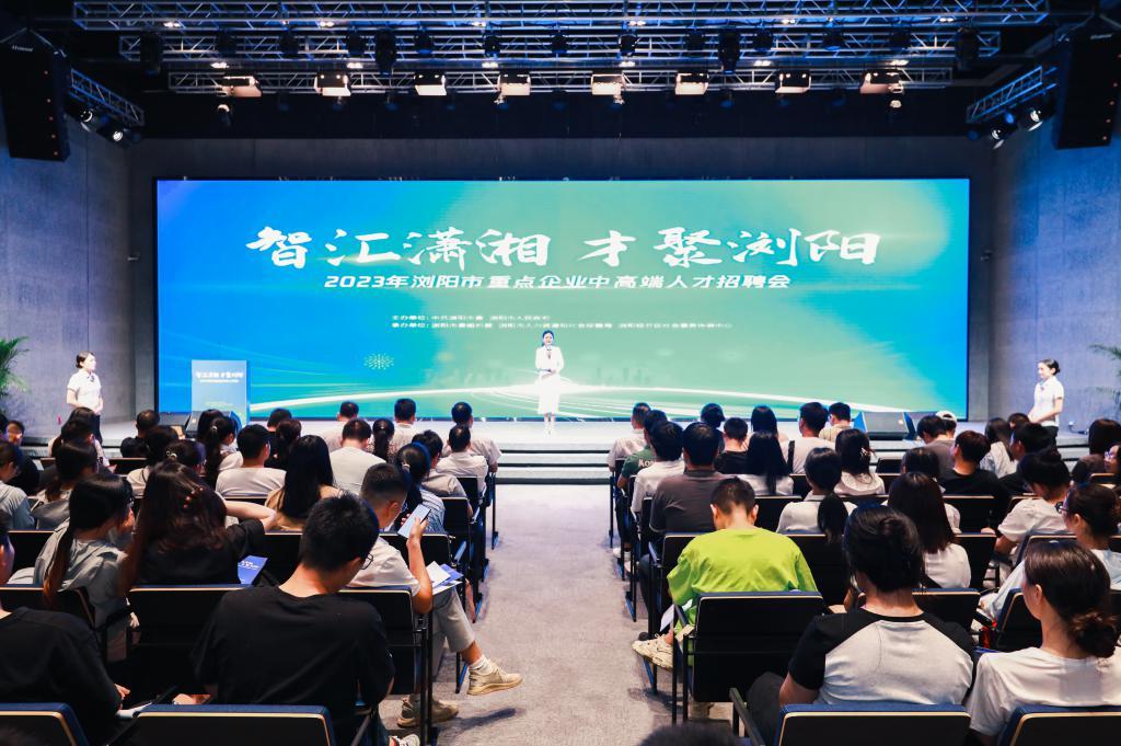 7 月 15 日," 智汇潇湘 才聚浏阳 "2023 年浏阳市重点企业中高端人才招聘会在岳麓科创港路演中心举行,20 余家重点企业诚意拿出近 700 个岗位广引 " 金凤凰 ",满满诚意吸引众多中高端人才的青睐,形成人才与城市双向奔赴的兴旺局面。