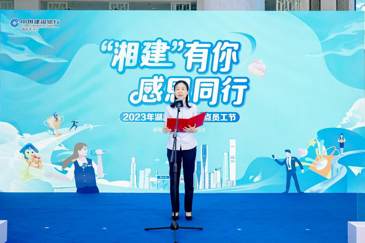 为全面落实党的二十大精神,践行“以人民为中心”的新金融理念,8月12日上午,湖南建行2023年“网点员工节”正式启动。省建行文爱华行长代表省行党委,向全行奋战在一线的网点员工致以最诚挚的祝福与慰问!向始终支持湖南建行事业的员工家属表示最衷心的感谢。省建行吴珊副行长出席长沙主会场启动仪式并致辞,其余各地市州分会场同步连线启动。
