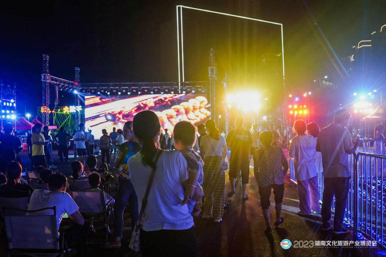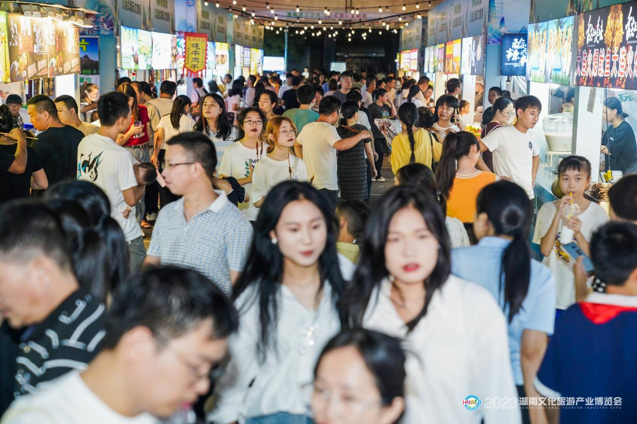 一提起潮文旅,本届旅博会最不能错过的,一定是湘粤港澳沉浸式潮文旅街。还未走进街区,就已经感受到了现场氛围的火热。湘粤港澳沉浸式潮文旅街是旅博会现场一个集合了湘粤港澳地区特色的文化、美食、音乐和手工艺品等元素的户外展区。为让有游客有一个全面沉浸式的潮流文化体验。潮文旅街联合郴州的和平夜市和长沙的扬帆夜市合作打造,融合了湖南、广东、海南和澳门等多地的特色元素,给游客们带来一场视觉、听觉和味觉的共享盛宴。