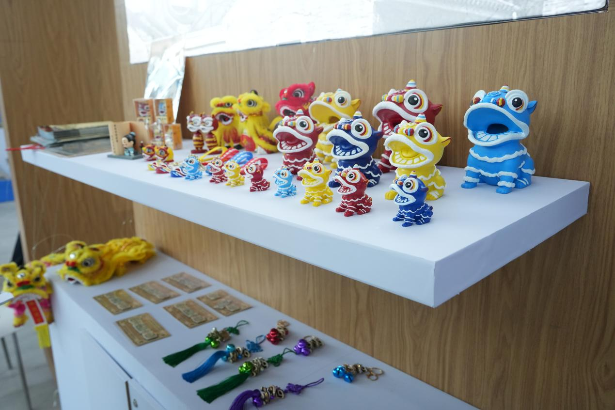 进入佛山馆,首先映入眼帘的是祖庙文创项目。这些文创产品将传统祖庙文化舞狮与时尚元素结合,展现了创新的设计理念。