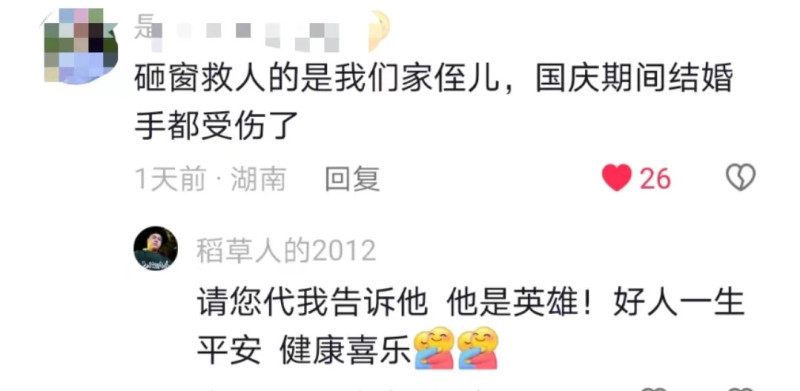 9月23日,“长沙警事”抖音账号评论区收到了彭先生妻子的一大段留言,她在留言中说:“他(彭先生)是我们全家的顶梁柱,全靠他一人辛苦赚钱养家,张含就是我们全家的恩人……”被救女乘客的弟弟也发信息给张含,向他表示感谢。
