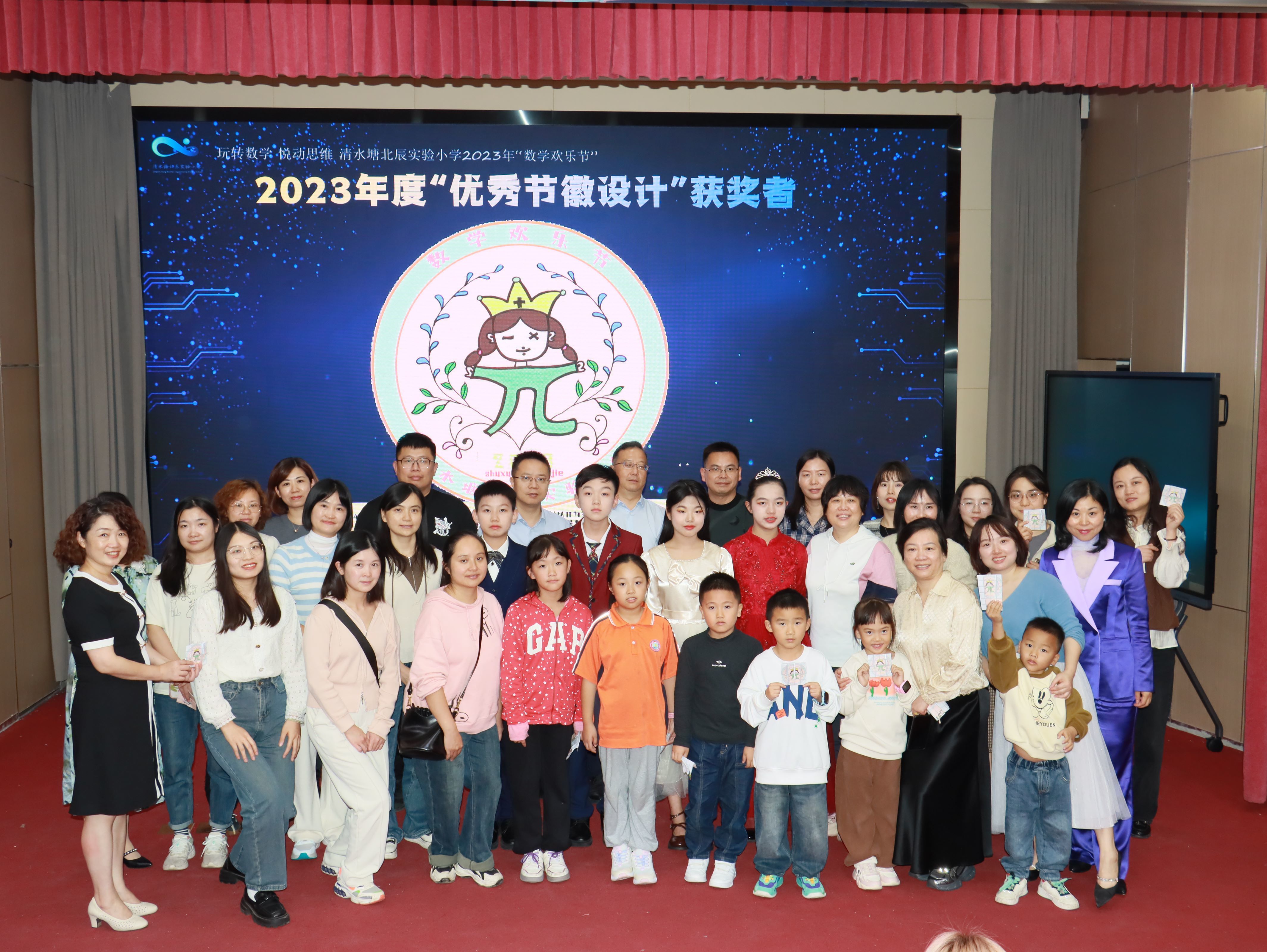 孩子们的魔方、魔术表演压轴登场,瞬间点燃会场,紧张的竞赛扣人心弦。活动最后,本届数学节的节徽也正式揭晓,小作者上台介绍了自己的设计理念,到场的嘉宾与孩子们一起互动,同玩节徽折纸游戏,数学节在孩子们的欢笑声中圆满落幕。