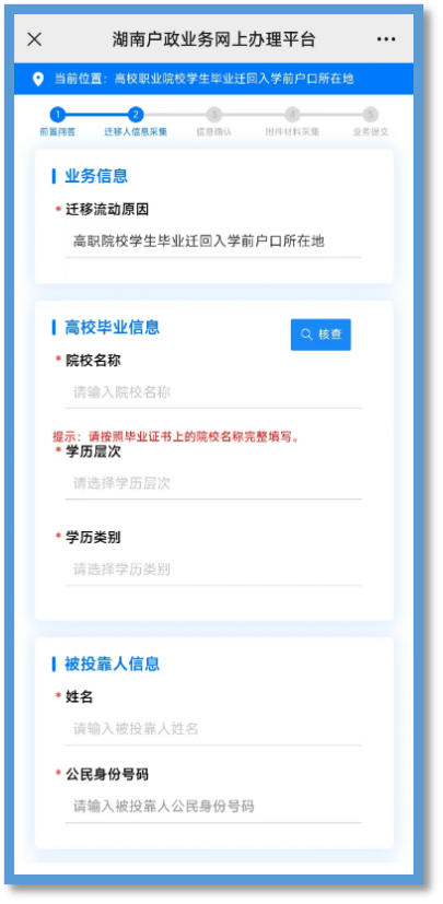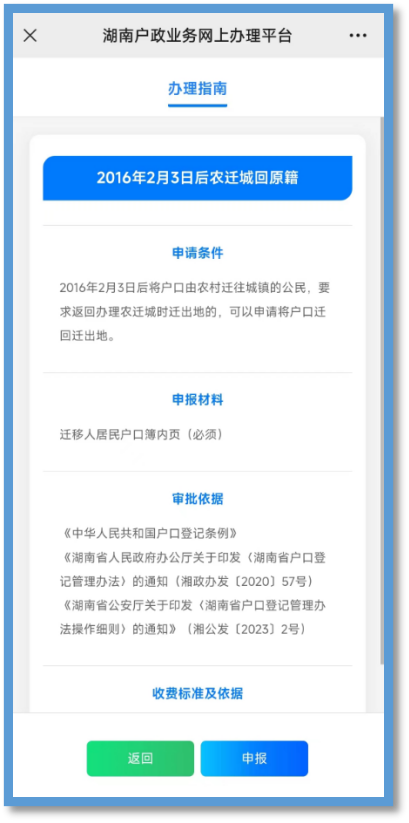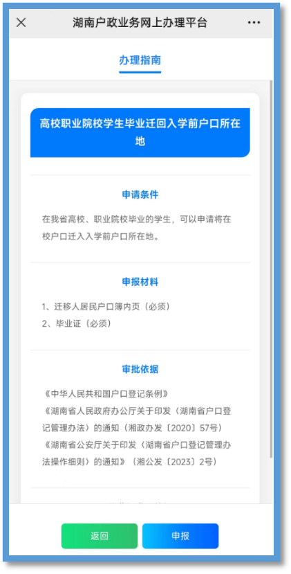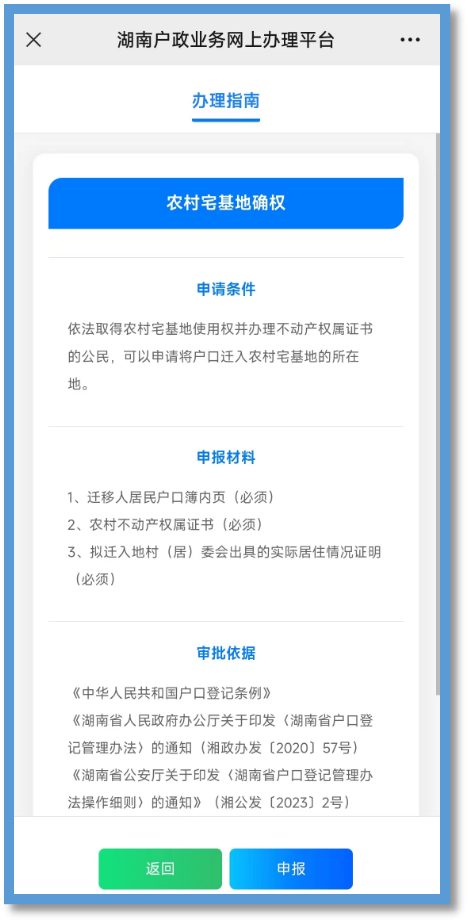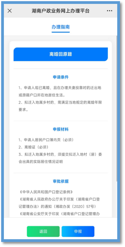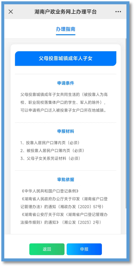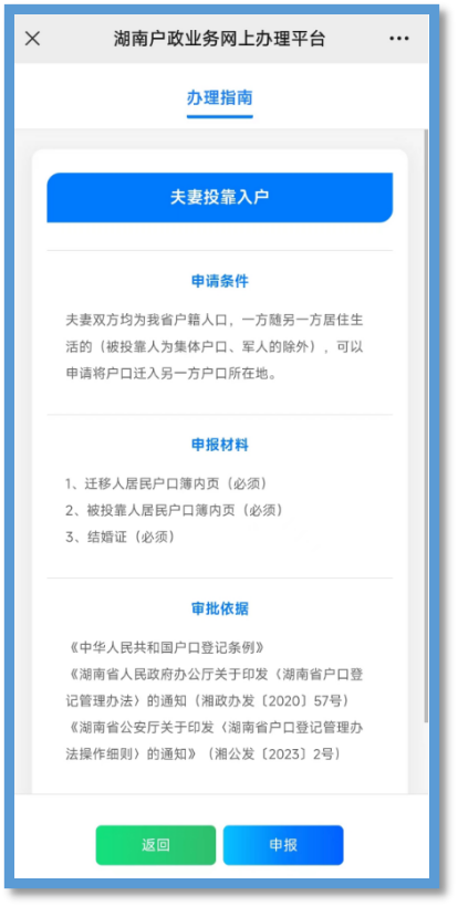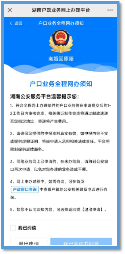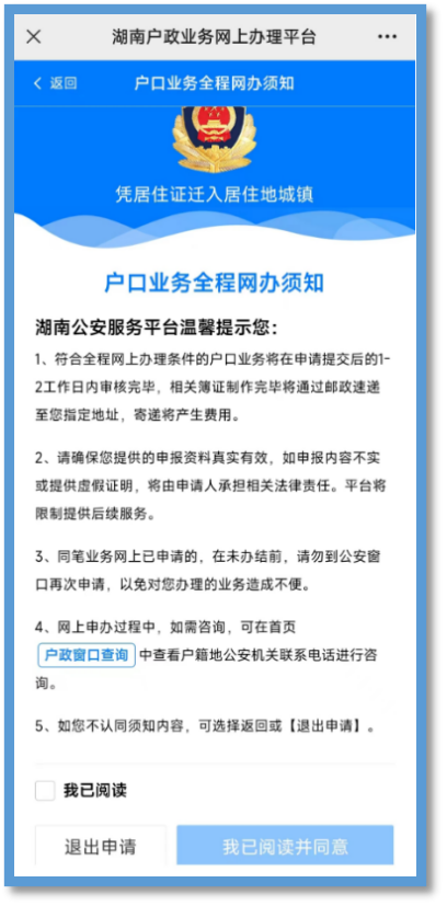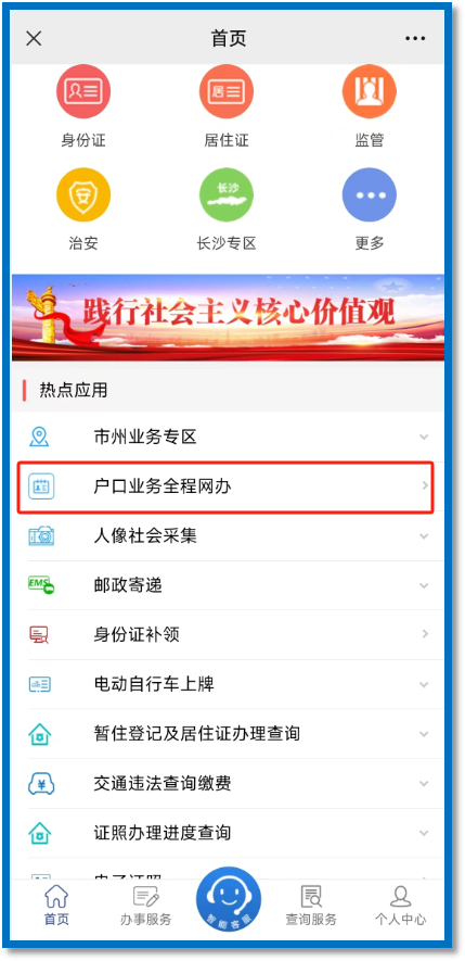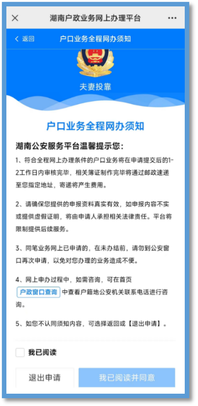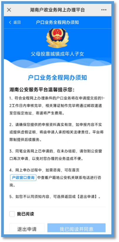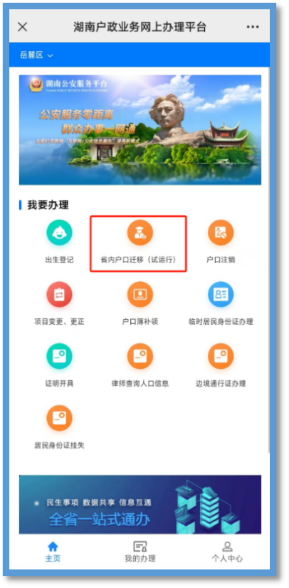 一、湖南户籍居民可微信关注“湖南公安服务平台”公众号,注册并实人认证登录,点击“微警务”,进入平台首页,在热点应用栏中选择“户口业务全程网办”,进入湖南户政业务网上办理平台,在“我要办理”菜单中选择你要申办的业务类型,阅读网办须知,填写相关信息,拍照上传证明材料,提交办件申请。