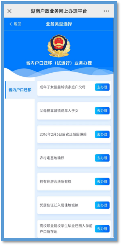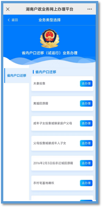 为满足人民群众对户政业务办理的新期待新要求,真正让群众办理高频户政业务“一次也不跑”,我省公安机关从2024年7月10日起,新增开通9项省内户口迁移全流程网上办理服务事项:夫妻投靠户口迁入、离婚回原籍户口迁入、成年子女投靠城镇家庭户父母户口迁入、父母投靠城镇成年子女户口迁入、2016年2月3日后农迁城人员回原籍户口迁入、农村宅基地确权户口迁入、拥有住房合法所有权户口迁入、凭居住证迁入居住地城镇、高校职业院校学生毕业迁回入学前户口所在地。