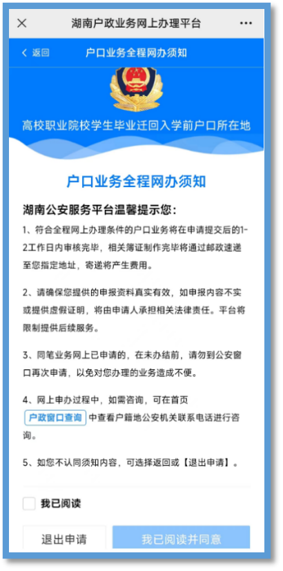 四、申请人在办理过程中,如需咨询相关业务,可联系“湖南户政网办中心”(咨询电话:0731-88997710)进行咨询,或在湖南户政业务网上办理平台下方“服务攻略”中点击“户政窗口查询”查找户籍地派出所电话进行咨询。