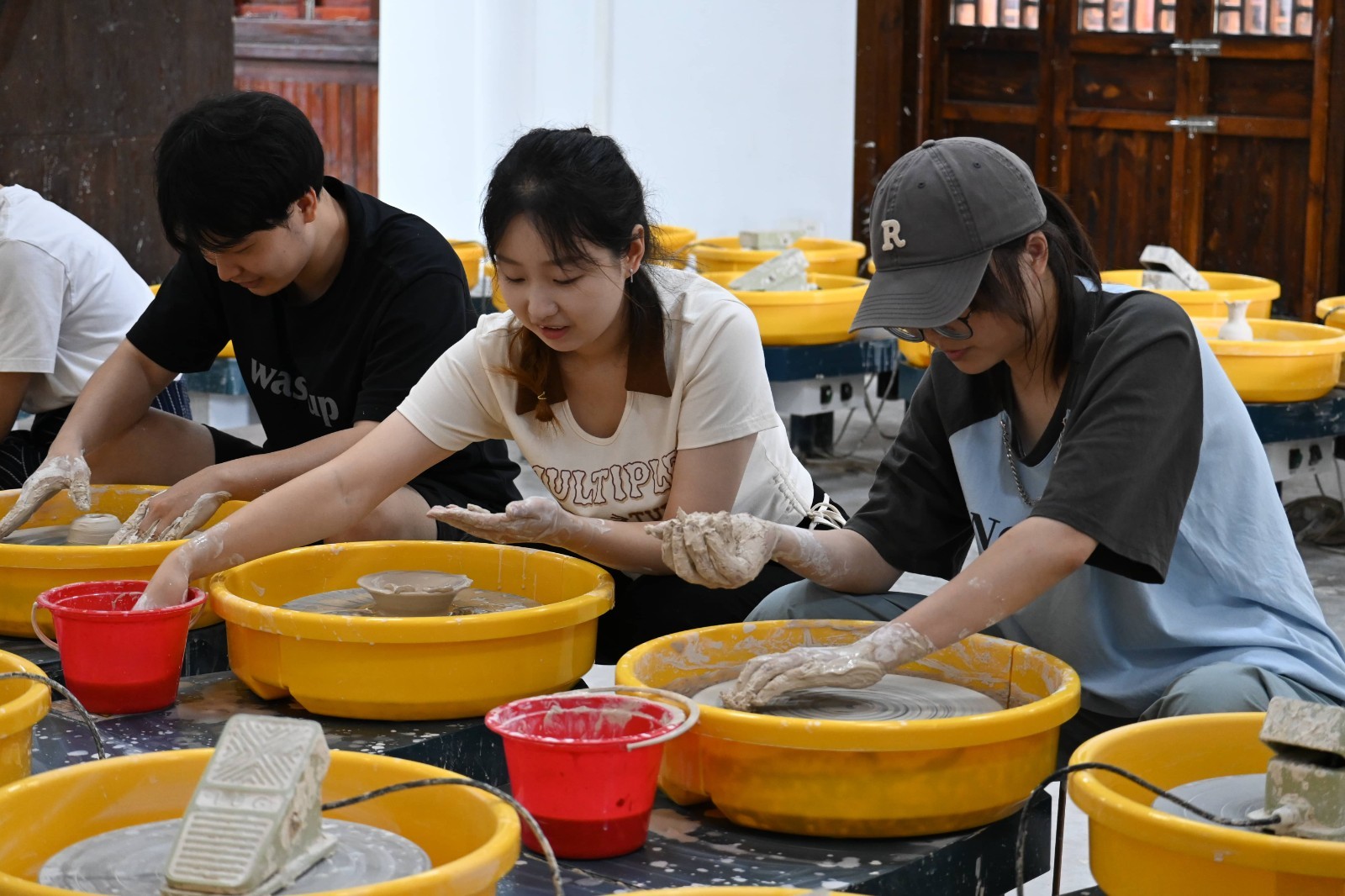 图为实践团成员尝试制作陶瓷 黄鸿摄