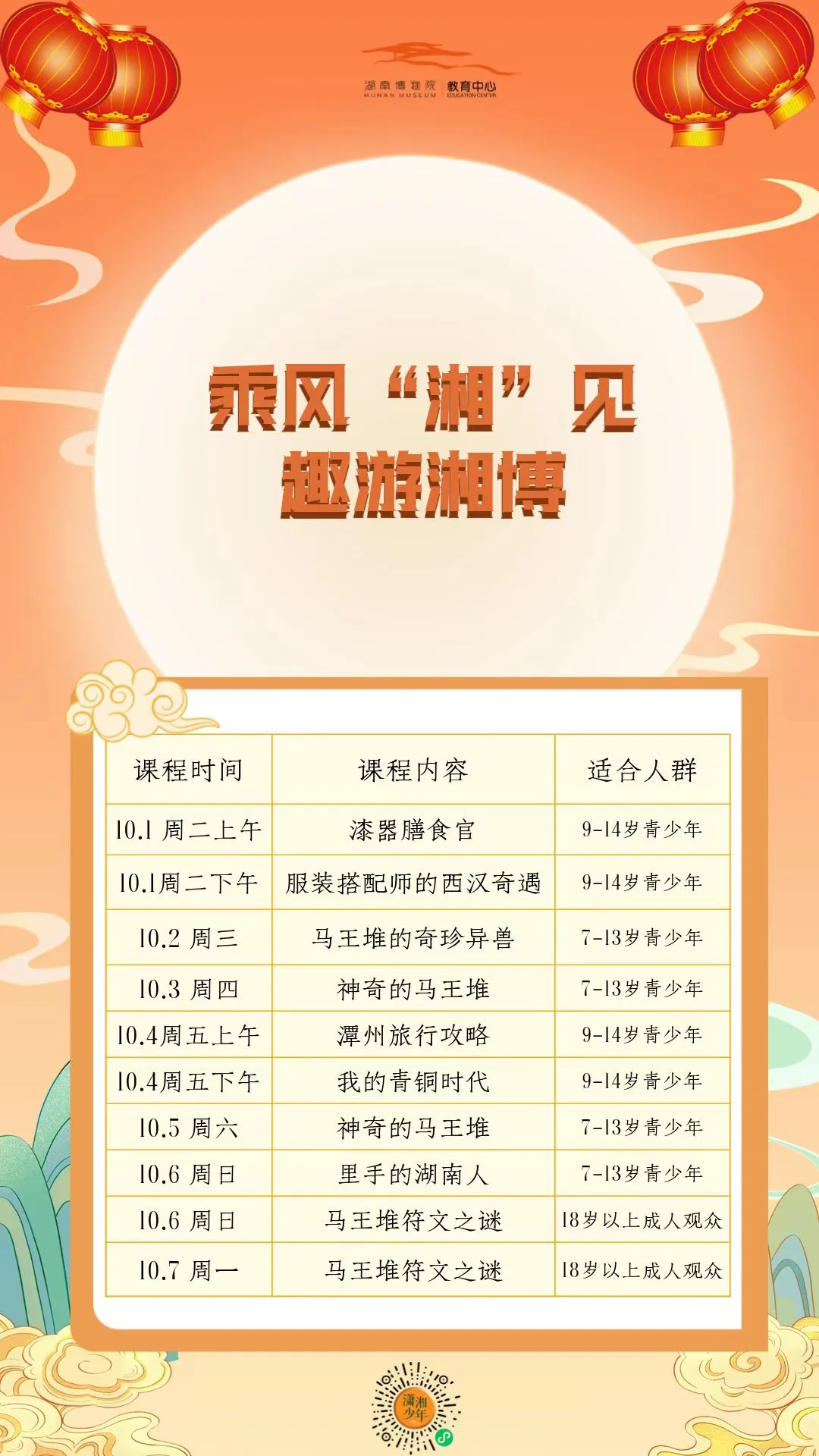 1. 为方便广大观众机动车停放需要,湖南博物院停车场对外开放。国庆节期间停车场开放时间为9:00-20:00(19:00后停止进车)。入馆高峰时段如遇观众排队聚集,将暂停开放停车场,确保入馆车道畅通后方可开放停车场。停车场仅对驾乘人员全员已预约车辆开放,其他车辆谢绝入馆。新能源车辆请按工作人员指引至停车场指定车位停放。入馆车辆的停放按照物价部门核定并公示的收费标准进行收费,车主可扫描收费二维码后根据收费标准支付停车费用。