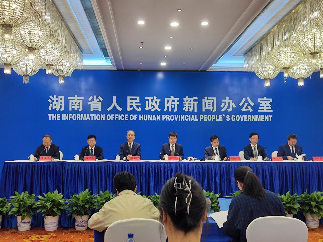 湖南省发改委党组成员、副主任文会中发布新闻,省工信厅、省财政厅 、省农业农村厅、省交通运输厅、省商务厅等部门负责同志出席发布会。