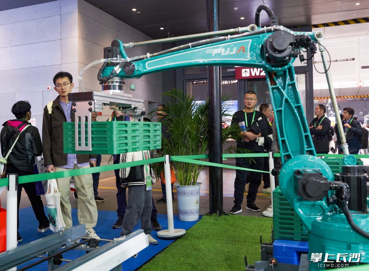 “我们已经参与了4届国际农机展,今年是第一次到长沙参展,主要展示了适合南方耕种场景的代表性产品。”在湖南展厅(W1号馆),益阳富佳科技有限公司育秧设施项目负责人贺雄向记者介绍展出的高速育秧播种流水线成套设备,“它搭建起了机械代替人工,完成从一颗种子到一株苗的全程机械化智能培育体系,以1.8秒一盘的速度,仅用3名工人进行8小时作业,就能供应500亩大田的秧苗,而且建设智能水肥一体化控制的育秧大棚后,种子出芽率能达到95%以上,用时缩短到22天,助推双季稻‘稳产高产’。”