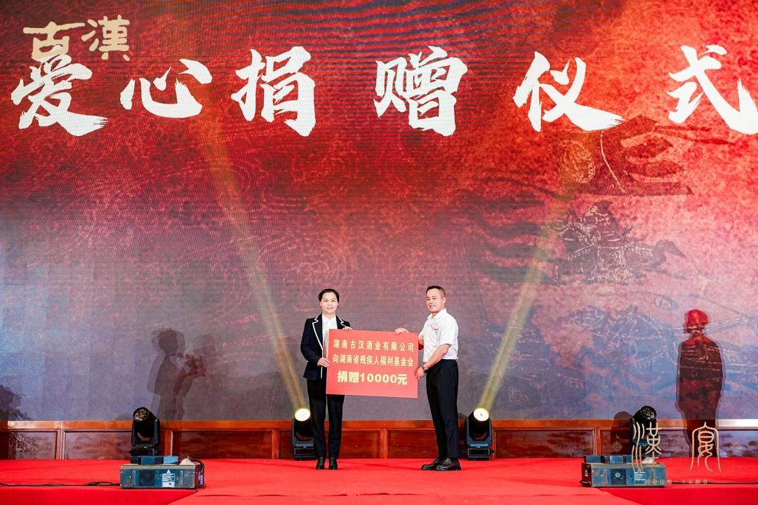近年来,湖南古汉酒业有限公司始终秉持“让文物活起来”的核心理念,在产品设计与品牌塑造中,不遗余力地传承汉文化精髓,实现文化与市场的完美融合。活动现场,公司向湖南省残疾人福利基金会捐赠一万元,展现了企业作为汉文化传承者与传播者的责任与担当。