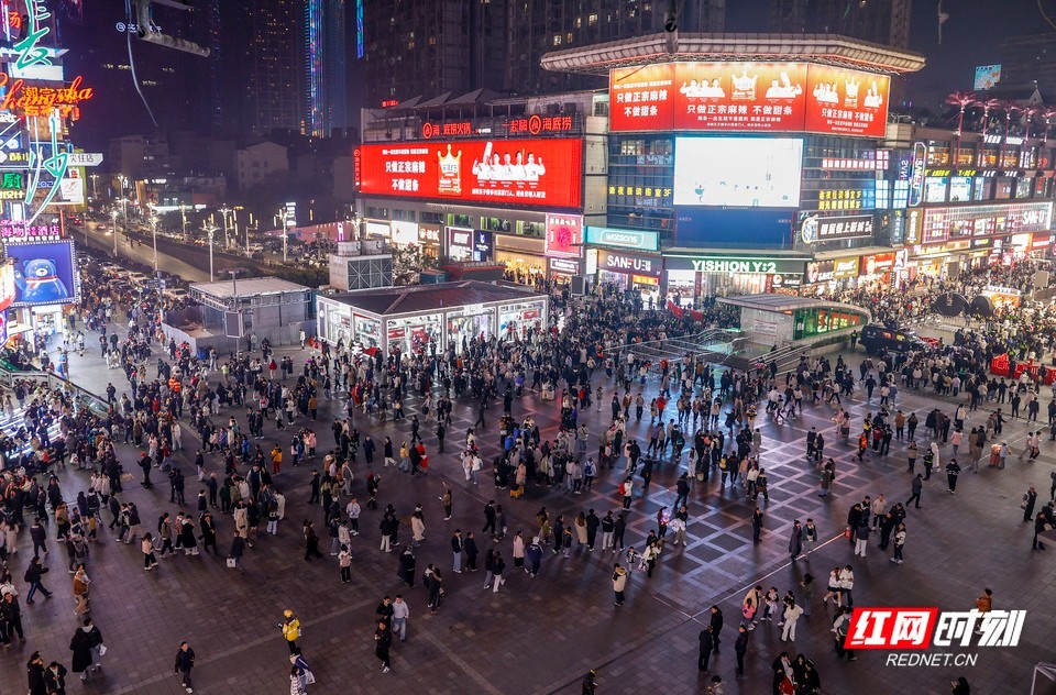 作为长沙的“会客厅”,尽管五一商圈并未举办跨年活动,但是市民与游客对新年的无限憧憬并未减淡半分,人们自发来到这里,共同迎接新年的到来。