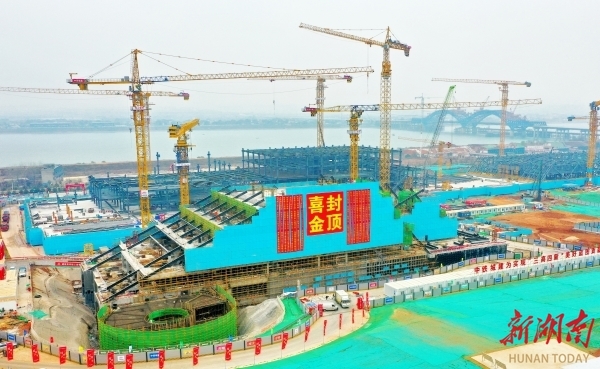 湘江院士港6栋建筑完成主体封顶,科技服务中心正式封顶,交易展示中心、科学交流中心、湘江创新港朝着2026年竣工目标全速冲刺……2024年12月,冬日暖阳下,湘江科学城建设现场一片火热,标志性建筑湘江科学中心“五大建”拔地而起。